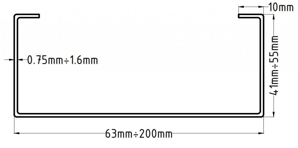 - Grosimea profilului C poate varia intre 0.75mm – 1.6mm